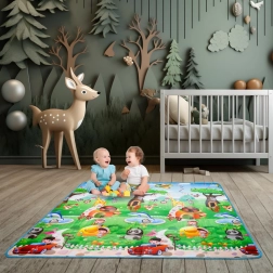 Tato skládací podložka z odolné pěny EPE je ideální jako koberec do dětského pokoje i herního koutku. Díky oboustrannému potisku spojuje zábavu a učení – děti si při hraní procvičí písmena, čísla a zvířátka.