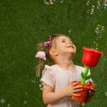 Tato bublinková mašinka ve tvaru červené růže v květináči nadchne všechny děti, které milují pohyb a hry na čerstvém vzduchu. Stačí nalít roztok, zapnout a sledovat, jak se kolem vás vznáší spousta třpytivých bublinek. LED podsvícení dodá bublinkám výjimečný vzhled, zejména za šera a večer.
