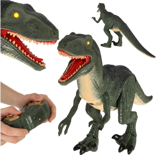 Interaktivní VELOCIRAPTOR potěší malé i velké fanoušky pravěku. Díky infra ovládání se dinosaurus rozchází, hýbe předními tlapami a otáčí hlavou. Svítící oči a realistický řev vytváří napínavou atmosféru pro dobrodružnou hru.