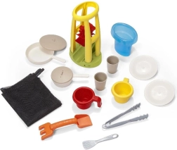 - - V sadě se nachází mnoho doplňků jako talířky, hrníčky nebo grilovací kleště.