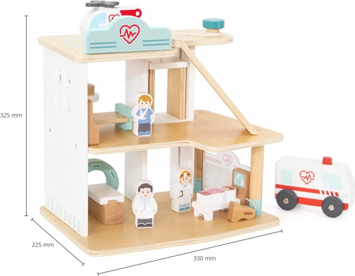Třípodlažní nemocnice Viga s bohatým vybavením pro kreativní zábavu a rozvoj empatie a dovedností u dětí.