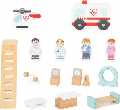 Dřevěná nemocnice s sanitkou a výtahem 15 ks Viga