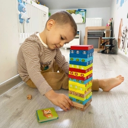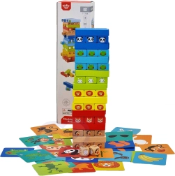 Dřevěná hra Jenga Zvířata TOOKY TOY se skládá z 82 barevných dílků, poskytujících nekonečné možnosti hry. Dílků se dobře drží v malých rukou a jsou zdobeny atraktivními ilustracemi zvířat, které přitahují pozornost dětí.