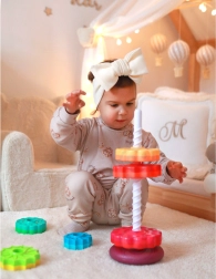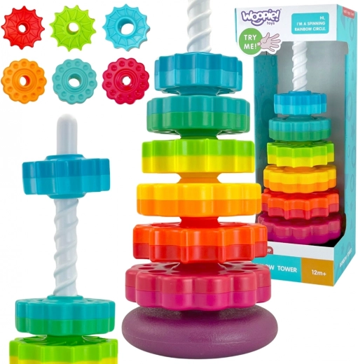 Zabavit dítě na hodiny? To dokáže hračka Prohnutá věž od Woopie, která nejen baví, ale i učí. Vytvořte si vlastní barevnou věž z šesti dvoubarevných disků a sledujte, jak se vše přesouvá do kouzelných tvarů.