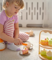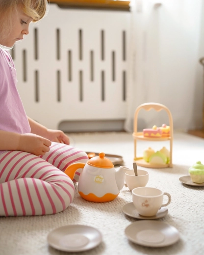 S touto roztomilou čajovou sadou WOOPIE se děti snadno ponoří do světa nápodoby dospělých – budou pořádat vlastní čajové dýchánky, zvát rodinu i kamarády a učit se sdílení a zdvořilosti. Bohatá výbava s konvičkou, šálky s podšálky, lžičkami a dezerty podporuje kreativní hry a rozhýbe dětskou fantazii.