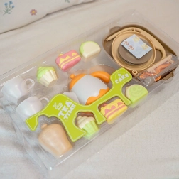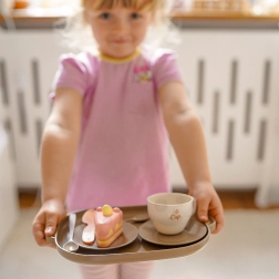 Lehké, dětem přizpůsobené komponenty s kulatými hranami se dobře drží malým ručkám a podněcují jemnou motoriku. Souprava v pastelových barvách je ideální pro každodenní hraní a učení skrze roli hostitele i obsluhy.