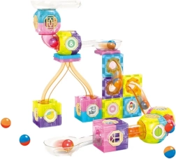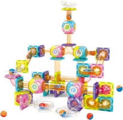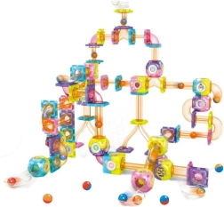 Tato pestrá magnetická kuličková dráha nabízí nekonečné možnosti stavění. Průhledné díly v duhových barvách motivují děti k experimentování, zatímco magnety drží konstrukce pevně pohromadě. Součástí jsou trubky, křivky, spojky i misky, které vytvářejí plynulý průjezd kuliček.