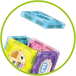 Děti si procvičí prostorové myšlení, plánování i koordinaci oko–ruka. Zábavná forma učení podporuje trpělivost, řešení problémů a samostatnost. Barevné samolepky navíc umožní personalizaci staveb a rozvoj fantazie.