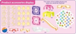 - Magnetické a klasické bloky, trubky, zatáčky, spojky, misky/trychtýře, kuličky, samolepky