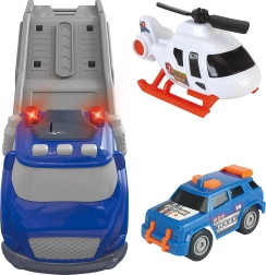 Objevte svět policejních akcí s modrým vlekem, záchranným helikoptérou a terénním policejním vozem. Díky světelným a zvukovým efektům se zábava stává ještě realističtější a emocionálnější. Tento model je ideální pro kreativní hry na domácí policejní stanici nebo záchrannou akci.
