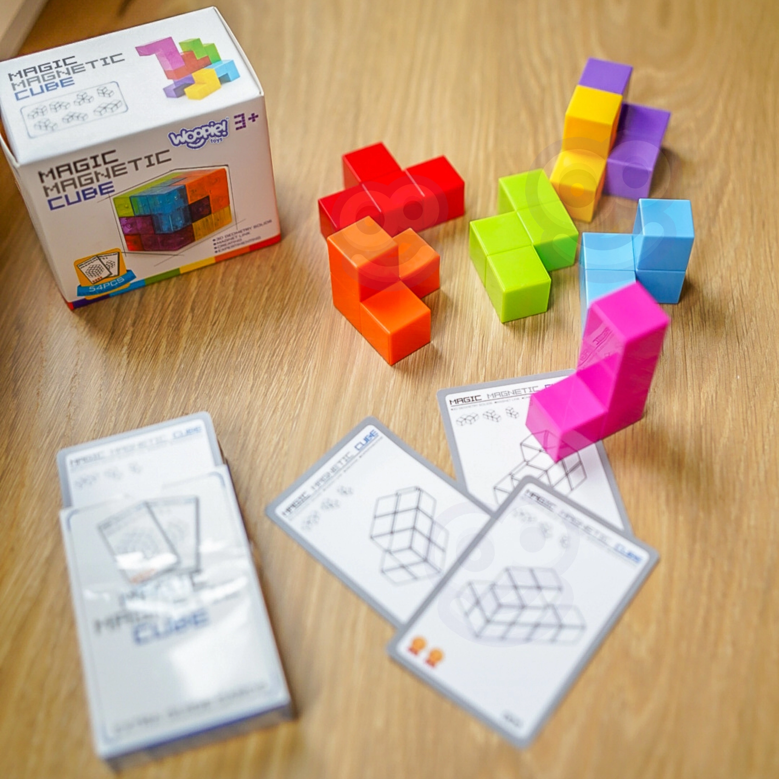 Tato magnetická skládačka ve stylu tetris přináší desítky prostorových výzev a nekonečné možnosti stavění. Díky silným magnetům se dílky jistě spojují, což usnadňuje manipulaci dětem již od 3 let. Součástí je sada úkolových karet, které postupně zvyšují obtížnost a podporují logické uvažování, trpělivost i představivost.