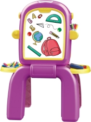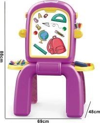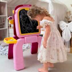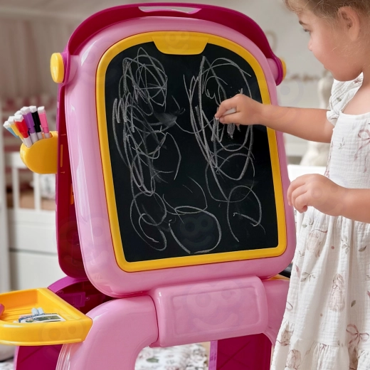 Oboustranná tabule WOOPIE přináší dětem zábavný a vzdělávací prostor pro kreslení, psaní a první školní cvičení. Jedna strana je bílá a suchostíratelná pro psaní fixy, druhá strana křídová pro klasické kreslení křídami. Díky stabilní základně a bočním přihrádkám mají děti vše po ruce a mohou se naplno soustředit na tvoření.