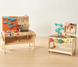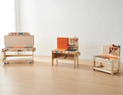 Dřevěný workshop STEM inspiruje děti k tvoření skutečných funkčních systémů a zábavy při stavění s realistickými nástroji.