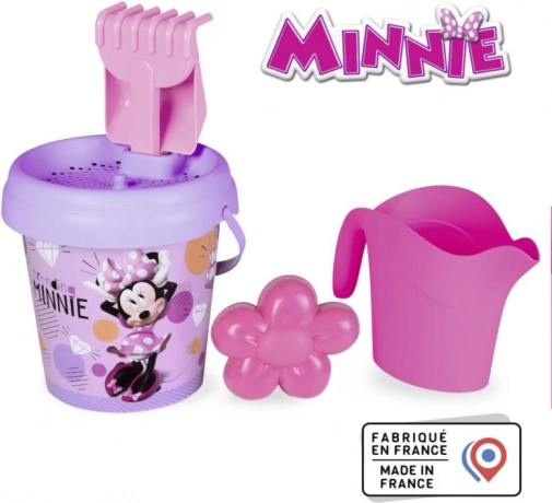 Veselý pískový set s motivem MINNIE potěší každého malého stavitele. Obsahuje kyblíček, sítko, hrabičky, lopatku, formičku a konvičku – vše pro zábavu na písku doma i u vody. Střední velikost je ideální do dětských rukou a snadno se přenáší.