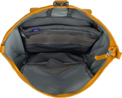 Uvnitř najdete přehledně členěný prostor s objemem 29 l a samostatnou polstrovanou kapsou na notebook s vlastním bočním vstupem na zip pro rychlý přístup. Rolovací horní část se sponou umožňuje upravit kapacitu podle aktuálních potřeb a udržet obsah bezpečně uzavřený.