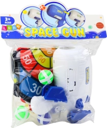 Pistole ve tvaru vesmírné lodi je vyrobena z odolného materiálu a umožňuje snadné natažení pružinového mechanismu k přesnému vystřelování. Šest přiložených míčků se suchým zipem snadno přilne k cílové tabuli, což usnadňuje počítání bodů. Rychlý montážní háček pro zavěšení na zeď, dveře nebo tabuli spolu s pohodlným fóliovým balením umožňuje snadné skladování a přenos.