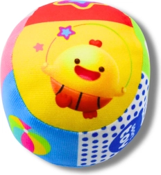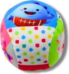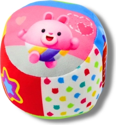 Uvnitř míčku se nachází chrastítko, které při pohybu vydává jemné zvuky, stimuluje sluch a přitahuje pozornost. Živé barvy a přátelské postavičky tištěné na míčku posilují zrakový vývoj a podporují kognitivní rozvoj.