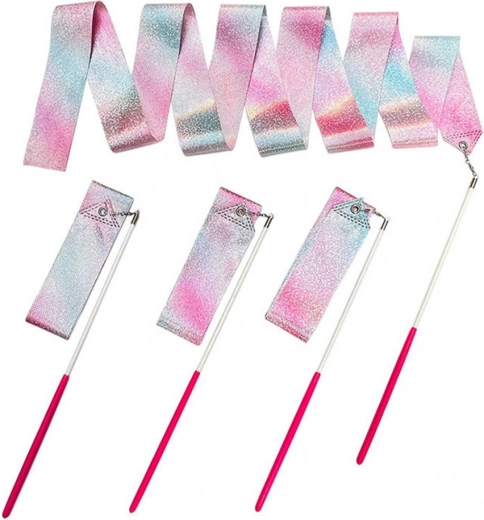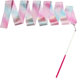 Stužka s délkou 205 cm a šířkou 5 cm zajišťuje plynulý a efektní pohyb ve vzduchu a vysokou estetiku prezentace. Je vyrobena z lehkého a odolného materiálu, který se nezamotá a krásně se pohybuje při každém pohybu. Rukojeť v podobě prutu nabízí pohodlné používání díky ergonomickému úchopu, a otočný mechanismus na pružině zabraňuje zamotání, což usnadňuje provádění plynulých a složitých figur.