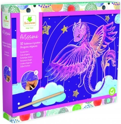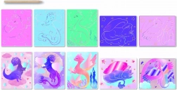 Kreativní sada pro děti od 5 let s motivy roztomilých dráčků nabídne hodiny tvoření a radosti. Obsahuje 10 obrázků, dřevěné škrabátko a návod. Jednoduché postupy, krásné barevné motivy a rozvoj jemné motoriky z ní dělají ideální dárek pro malé tvůrce.