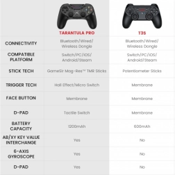 Získejte konkurenční výhodu s herním ovladačem GameSir Tarantula Pro, který kombinuje ultra rychlou odezvu, precizní ovládání a širokou kompatibilitu. Nabízí magnetické páčky Mag-Res TMR, Hall Effect triggery s režimem Hair Trigger, RGB osvětlení a tři režimy připojení pro hraní na Switch, PC, iOS, Android i Steam.