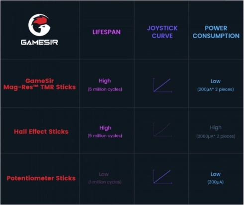- GameSir Mag-Res TMR pro vysokou přesnost a nízkou spotřebu