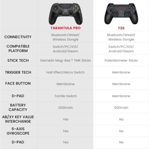GameSir Tarantula Pro posouvá hraní na novou úroveň díky propracované ergonomii, rychlé bezdrátové komunikaci a pokročilým technologiím. HD Rumble přináší realistickou haptickou odezvu, zatímco 6osý gyroskop a NFC rozšiřují možnosti na konzolích Nintendo. Elegantní RGB světelný pásek a barevná čelní tlačítka podtrhují jeho výrazný styl.