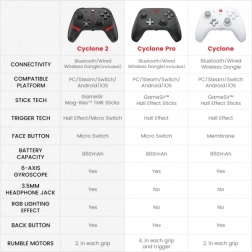 Objevte bezkonkurenční přesnost a vysoký výkon s bezdrátovým ovladačem GameSir Cyclone 2. Nabízí třírežimové připojení (2,4 GHz, Bluetooth, kabel), multiplatformní kompatibilitu (Switch, PC, Android, iOS), nové páčky Mag-Res TMR, analogové spouště s Hall efektem, 6osý gyroskop, pohlcující vibrace a RGB podsvícení pro dokonalý herní zážitek.