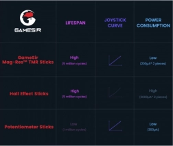- páčky Mag-Res TMR, analogové spouště s Hall efektem, D-pad, přední mikrotlačítka