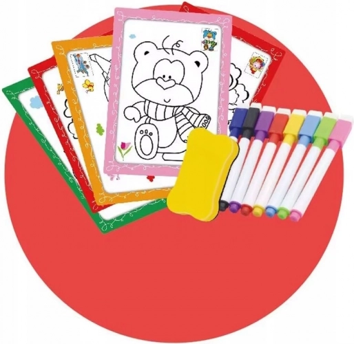 - 8 suchých fixů, stírací houbička, 18 oboustranných stíratelných karet, sada barevných kostiček (Tetris)