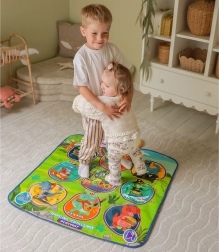 Interaktivní hudební podložka s motivem dinosaurů od značky WOOPIE promění každý pokoj v zábavné taneční hřiště. Děti si procvičí koordinaci, rytmus a motoriku, zatímco se baví na dotykových polích. Podložka je z odolného, snadno omyvatelného materiálu a ovládá ji praktický řídicí modul. Ideální pro aktivní hraní, učení i zábavu s kamarády. Rozvoj pohybu, podpora rytmu a snadná údržba v jednom.