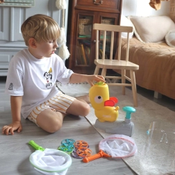 Dovednostní hra od značky WOOPIE je určena pro zábavu celé rodiny. Je založena na zrůčnostech, koncentraci a koordinaci pohybů. Hráči mají za úkol chytat disky vystřelované pomocí kachního katapultu. Čím silněji stisknete tlačítko, tím výše disk vystřelí, takže hra je ještě více vzrušující.