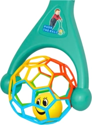 Pchací hračka s elastickým míčem a chrastící kuličkou