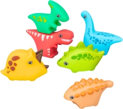 Dole na každém dinosaurovi je otvor s pískátkem – při stisknutí vydá zábavný zvuk, což dodává hře na přitažlivosti a podporuje rozvoj sluchu a koordinaci ruka-oko. Hračky jsou skvělé nejen do koupele, ale i na suchu – například při hře na podložce.