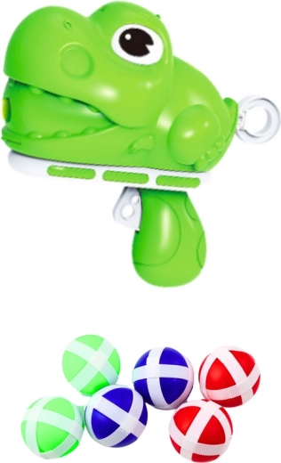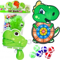 V sadě najdete pistoli ve tvaru dinosaura, která díky pružinovému mechanismu umožňuje rychlé natažení a výstřel. Tímto způsobem se hráč učí plánování pořadí tahů a přesnosti, což zvyšuje jeho dovednosti. Hra obsahuje šest měkkých, bezpečných míčků s lepícími prvky, které pevně přilnou k povrchu terče a minimalizují riziko ztráty dílů.