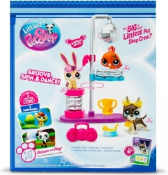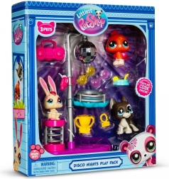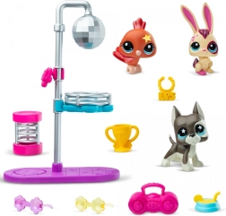 Vstupte do světa LITTLES PET SHOP a užijte si disco atmosféru! Tato hravá sada přináší tři taneční mazlíčky připravené zářit pod světly disco koule. Otočné plošinky jim umožní točit se a předvádět své nejlepší pohyby, zatímco stylové doplňky podtrhnou jejich osobnost.
