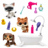 Vytvořte svým mazlíčkům ten nejlepší den ve spa! Set přináší trio populárních postaviček s jedinečným stylem a 10 doplňky, díky nimž budou vždy čistí, voňaví a připravení na show. Barevné příslušenství jako kartáč, fén a žlutá kachnička promění každou koupel v zábavnou bublinkovou hru.