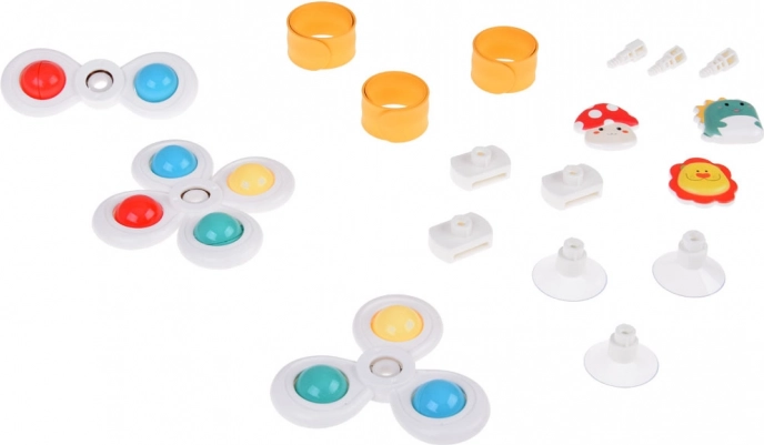 Díky speciálním kroužkům gravičky spinner rozvíjí schopnosti motoriky vašeho dítěte a poskytuje mu nekonečnou zábavu. Spinner je dostupný v 3 kusech, každý s vlastní přísavkou a páskem, a přináší pestré a zábavné chvíle.