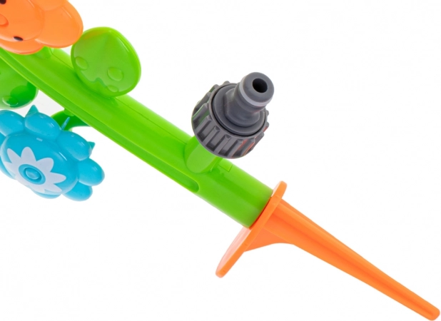 Montáž je maximálně jednoduchá: zapíchněte hrot do země, připojte zahradní hadici přes standardní rychlospojku a je hotovo. Odolné plastové provedení zvládne více sezón a pestré barvy lákají ke hře znovu a znovu.