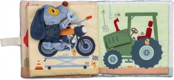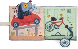 Kniha je vybavena rozkošnými ilustracemi, které ponoří vaše dítě do světa rušné garáže. Je vyrobena z recyklovaného polyesteru a lze ji snadno prát v pračce na 30°C, jemný cyklus. Perfektní dárek pro nejmenší objevitele.