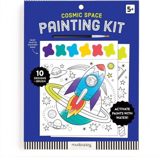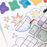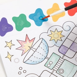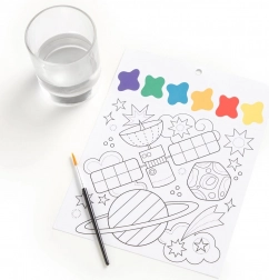 Vhodná pro malé umělce, tato sada rozvíjí tvůrčí myšlení, motoriku a soustředění. Jednoduše namočte štětec a začněte vybarvovat vesmírná tělesa na listech s perforovaným okrajem pro snadné oddělení hotové kresby. Dodržuje všechna aktuální evropská bezpečnostní normy, což zajišťuje bezpečný zážitek pro děti.