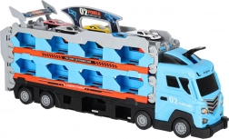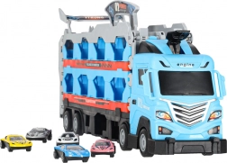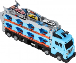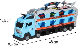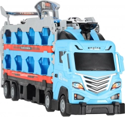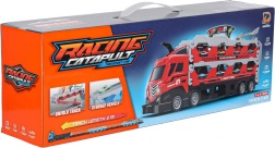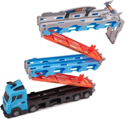 Tato multifunkční sada kombinuje přepravník aut a dlouhý závodní okruh v jednom. Po rozložení se z kamionu stane dvojitá trať o délce 210 cm, na které mohou děti pořádat napínavé souboje a měřit rekordy.