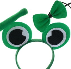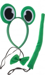 Roztomilá sada pro malé žabičky obsahuje zelenou čelenku s výraznými očky, ladící motýlek a ocásek. Ideální na karneval, maškarní bál, Halloween i domácí hraní. Měkké materiály, univerzální velikost a pevně vyztužené oči zajistí pohodlí i skvělý vzhled po celý den.