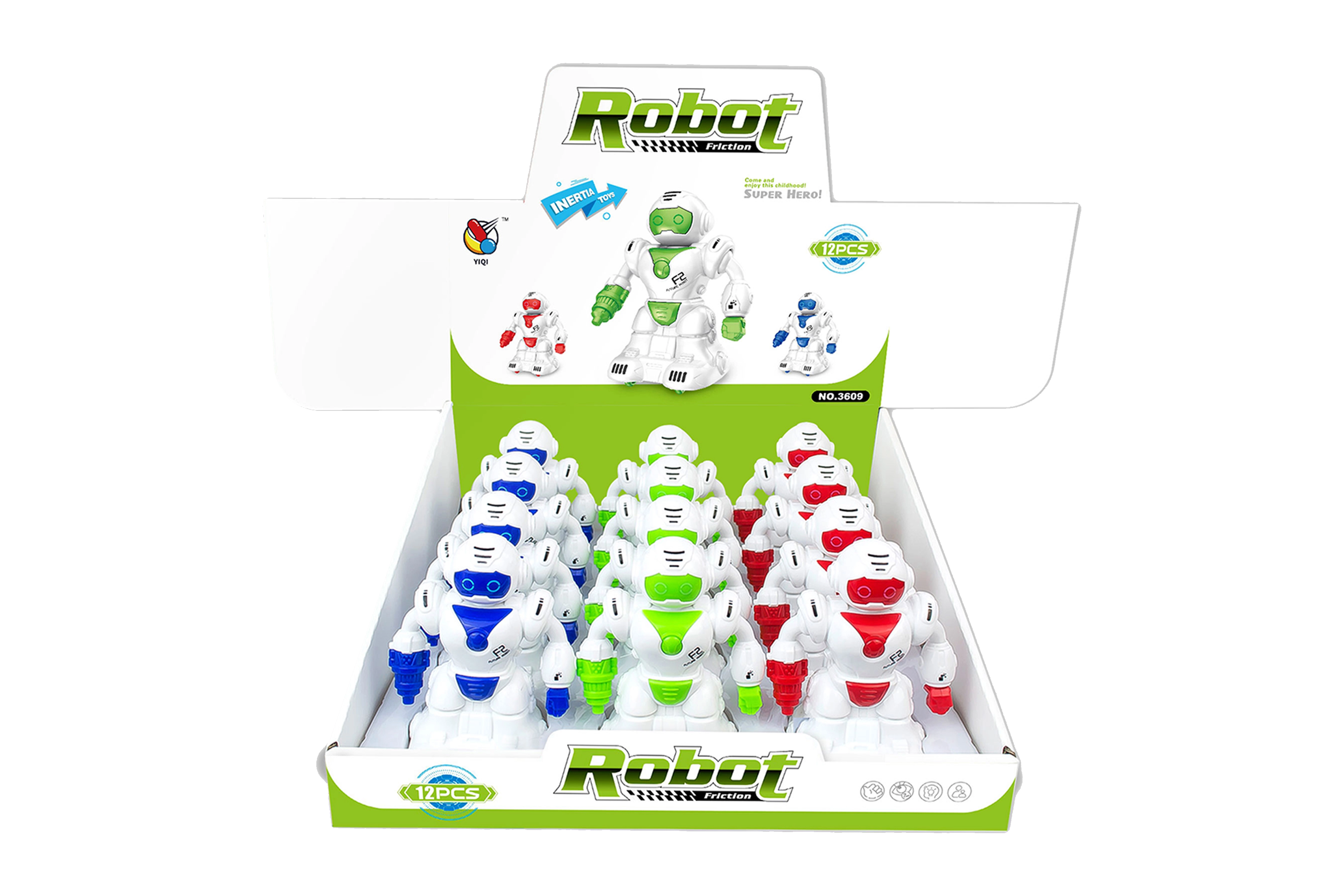 Objevte zábavu s robotem na setrvačník o rozměrech 12 cm, který je dostupný ve třech živých barvách: zelená, modrá a červená.