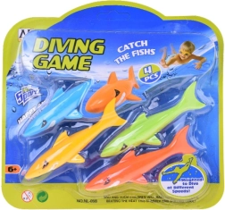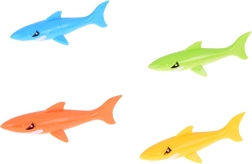 Sada obsahuje 4 barevné žraloky o délce přibližně 12 cm a šířce 3 cm, vyrobené z měkké, potápějící se gumy. Tyto hračky jsou příjemné na dotek, bez ostrých hran a zcela bezpečné pro hru ve vodě, ať už v bazénu, brouzdališti nebo vaně.