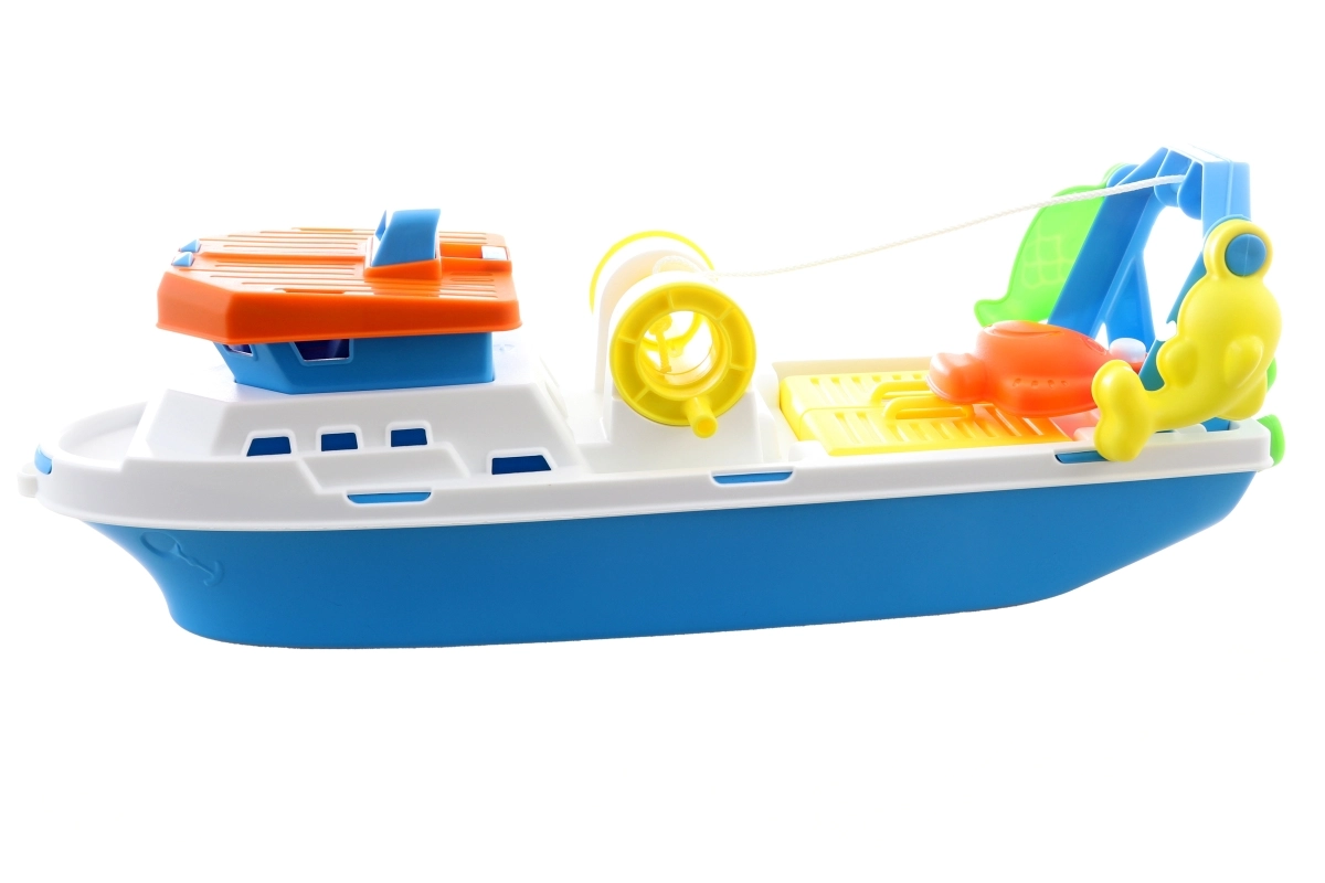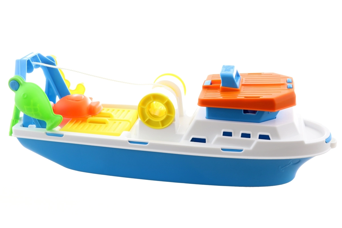Objevte kouzlo rybolovu s touto prostornou plastovou rybářskou lodí o velikosti 40 cm. Ideální pro děti od 3 let, podporuje rozvoj dětské představivosti.
