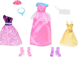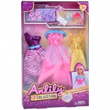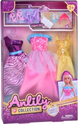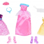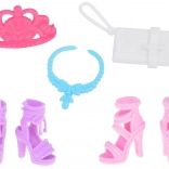 Zestav módních oblečků ANLILY je perfektní pro děti, které milují styl a designování. Obsahuje tři různé šaty - každý s unikátním střihem a barvou, dvě elegantní páry bot na podpatku, stylovou tašku, modrý náhrdelník a jemnou korunu, která je ideální pro každou malou princeznu.