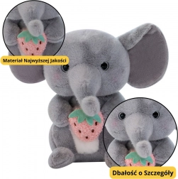 Plyšový slon se může stát skvělým společníkem pro každodenní hraní, cestování, školku nebo klidný spánek. Jeho kompaktní velikost zajišťuje snadné přenášení. Slon má velké uši, milý výraz a drží plyšovou jahodu, která jej dělá jedinečným.