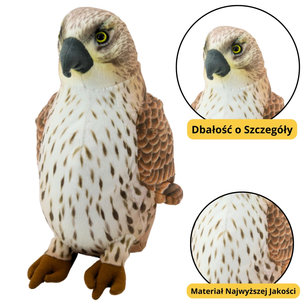 Pluszová hračka sokol stěhovavý je realistická a působivá plyšová hračka vytvořená pro děti fascinované přírodou. Vyrobeno z měkkého a příjemného plyše v přírodních hnědých a béžových odstínech pro co nejvěrnější vzhled dravého ptáka.