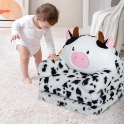 Okouzlující design s charakteristickými bíločernými skvrnami, přátelským obličejem, růžovým nosem, vystouplými ušima a měkkými rohy okamžitě přitahuje pozornost dětí a přináší do interiéru veselou a útulnou atmosféru. Kůží motiv dokonale ladí s dekorací dětského pokojíčku a stává se jeho funkčním doplňkem.