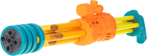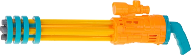 Vyrobena z kvalitního plastu, tato pistole je lehká, ale odolná. Zářivé barvy jako žlutá, oranžová a modrá upoutají pohled každého dítěte.